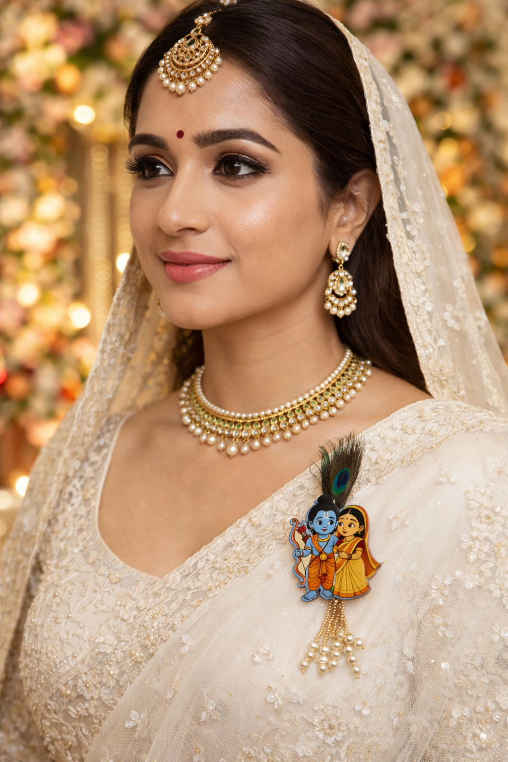 Crafted with attention to detail, this brooch is lightweight, easy to wear, and suitable for long religious events. It pairs well with kurtas, sherwanis, jackets, shawls, and traditional attire. Ideal for wedding rituals, temple visits, bhajan sandhya, and spiritual gifting.